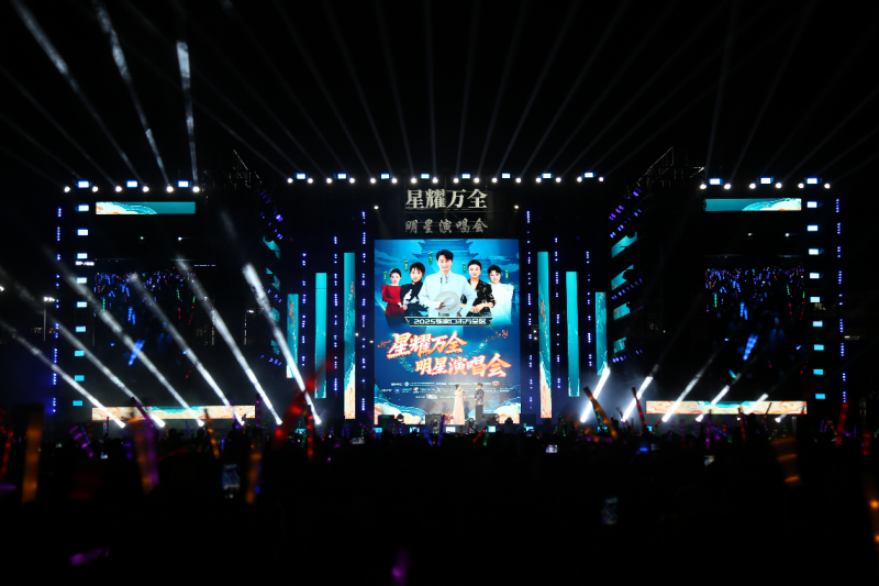 全体艺人共同演绎的经典曲目如暖流般席卷全场,数万名观众自发打开手机闪光灯,形成星海与舞台光影交相辉映的动人画面,将气氛推向顶点。舞台背景主屏与现场光影交织变幻,让音乐与视觉艺术在夜色中完美融合,为每位观众镌刻下难忘的记忆。