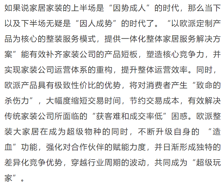 10个月业绩破20亿!欧派整装大家居有何制胜秘技?