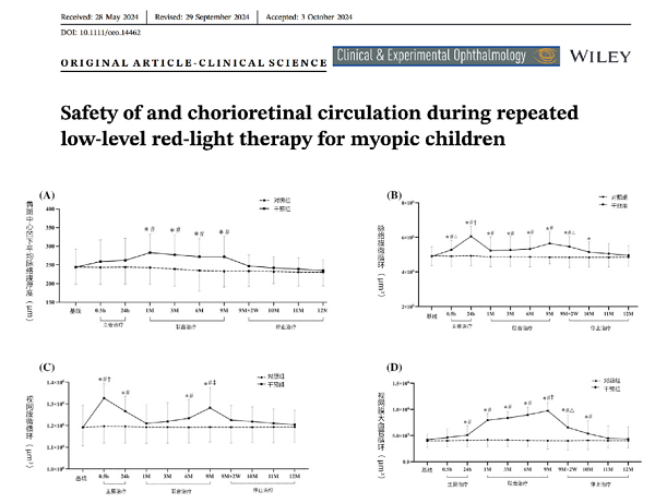 中山大学中山眼科中心马进教授团队在国际著名眼科期刊《Clinical & Experimental Ophthalmology》杂志上发表了一篇临床研究。研究结果表明:1、首次照射可出现应激式改变;2、连续照射后出现适应性回归,终止照射后眼底结构及功能逐步回归至初始状态(支持该治疗的长期性);3、未出现相应的眼底视功能和形态的毒副作用。这一发现对于红光疗法的发展具有重大的现实意义,因为它不仅证实了红光疗法在长期应用中的安全性,还揭示了红光对眼部微循环的积极影响。这意味着红光疗法可以作为一种安全、有效的治疗手段,用于改善眼部血流和治疗近视。