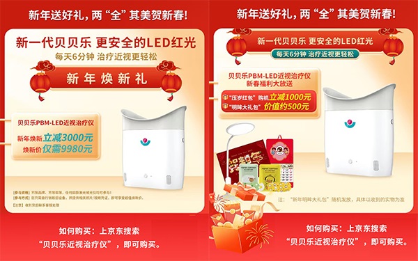好消息!目前贝贝乐PBM-LED近视治疗仪进行“新年好礼”活动!以旧焕新可立减3000元;或新机购立减1000元+赠送价值500元礼包!