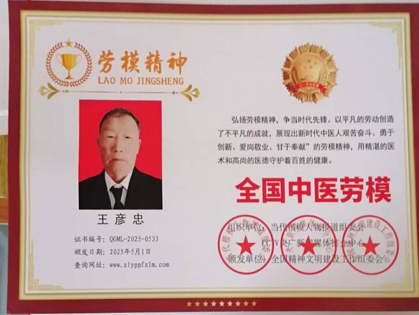 王彦忠:生于1952年3月,中医践行者,退休于黑龙江省农垦系统,从事中医事业数十年。自幼爱好中医,也很羡慕中医事业。拜读了《黄帝内经》等很多中医典籍。后来在北京医学研究院和中医研究院临床康复系专业培训,学会了《徒手移病之绝技》,后来被聘请到深圳几家中医养生理疗馆助诊。2015年,带领中医团队去厦门中国中医集团进行中医专家培训。注:中国中医集团是由北京十大名医院组成,(国太亚医),成功治愈了很多糖尿病、颈椎病、肾病综合征、中风后疑症、腰腿痛、痛风、痛经、各种癌症等其他疑难疾病。我信奉的不是输液,不是打针,只是通过简单的输通经络,艾灸穴位,及日常生活习惯和饮食,运动,睡眠调整来治愈,被病人亲切的称之为,这才是真正的中医专家!能得到病人的认可,是一个医生最大的荣誉,所以我立志要帮助更多的人。随着国家对中医行业的大力支持,我们中医界迎来了又一个春天,相信越来越多的人,以后看病首先想到我们中医。我走过了大江南北,国际研讨,在中国看来,古代的传统中医很少见了,很多都是挂着中医的招牌,做的都是创新后的中医,以仪器为主导,与中医的望闻问切俱不相附。2016年8月5日央视新闻播出,6天内有三位名医离世,医生都救不了自己,如何来救你。现在医学界也是很平常的事。我认为,自己治不了自己病的医生,(古代)来说,连庸医都不够资格。