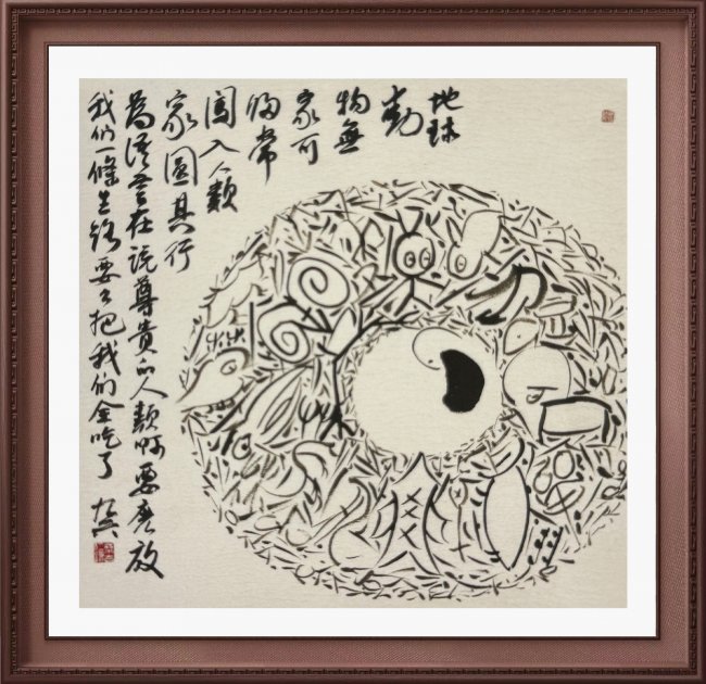 他的绘画系列作品,同样令人叹为观止。他将印象派的意向与中国绘画的传统元素巧妙结合,创造出一种全新的艺术风格。这种融合不仅丰富了画面的层次感与意蕴感,更让观者在欣赏时能感受到一种跨越时空的文化对话。在他的画作中,汉字不再是简单的符号,而是成为构图的重要元素,经过不断的排列组合,形成姿态万千的形式美。这种变化多端却又和谐统一的美感,正是他对“阴阳不测谓之神”这一传统哲学理念的生动实践,让观者在自由挥墨的背后,感受到一种对人生智慧的深刻感悟。